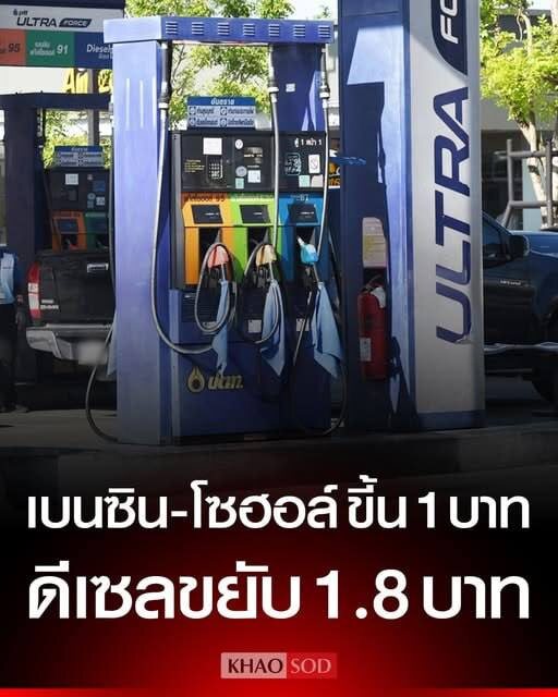 Бензин снова вырос в цене, только теперь на 1 бат, а дизель на 1.8 бат.