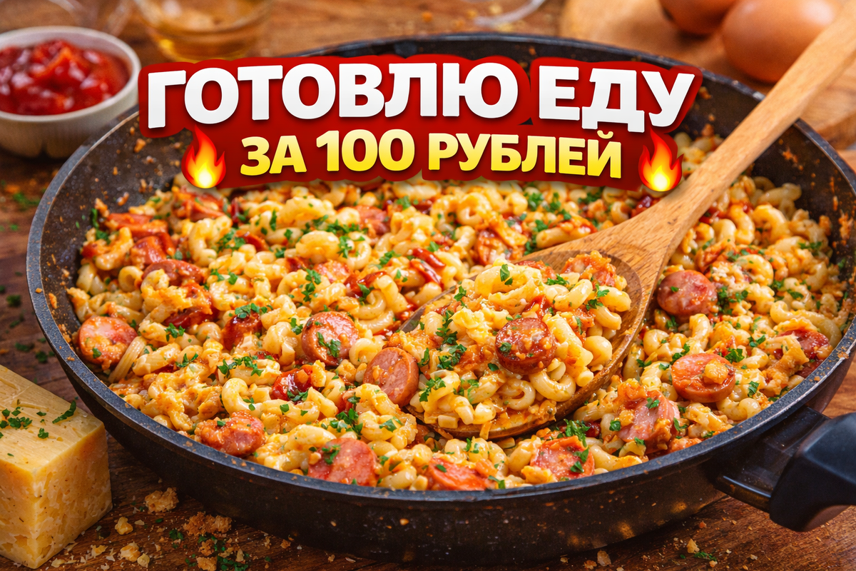 Берём самое простое: макароны или лапшу, пару яиц, сосиски или дешёвую колбасу и какой-нибудь соус. Иногда можно поймать акции, и тогда вообще получается собрать всё ещё выгоднее.