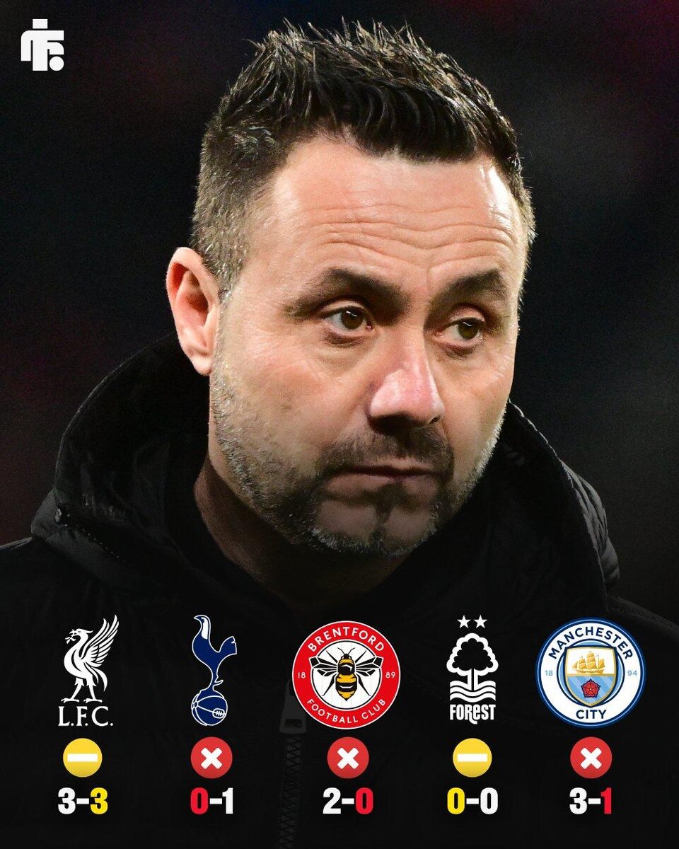 После назначения в "Брайтоне" Роберто Де Дзерби не знал побед на протяжении 41 дня. Для "Тоттенхэма" сезон завершится через 55 дней 😲