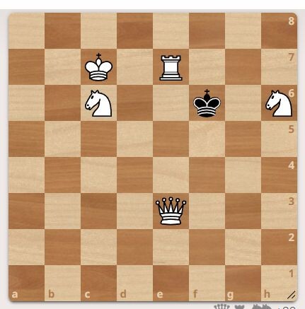 У черных только король. У белых два коня, ладья и ферзь. Автор задачи А. Понкратьев, 2006 год. Ход белых, мат в 2 хода. Подписывайтесь и ставьте лайк. Первый верный ход смотрите в галерее.