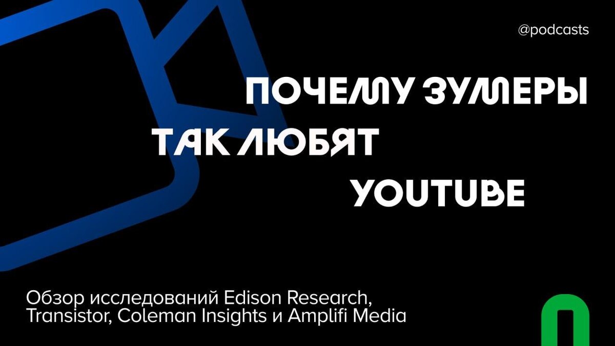 Edison Research назвала YouTube любимой платформой для подкастов поколения Z. На втором месте Spotify, на третьем — Apple Podcasts. А по данным Coleman Insights и Amplifi Media, почти все зумеры хотя бы иногда смотрят видеоверсии, и больше трети выбирают в основном видео. Мы изучили исследования и в материале рассказываем, почему зумеры любят видео, как ищут подкасты и как привычки этого поколения влияют на индустрию. #статьи https://podcasts.ru/pochemu-zumery-tak-lyubyat-youtube/