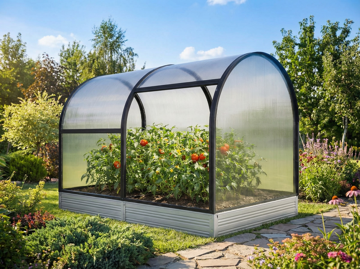 Каркас изготавливается из оцинкованной трубы, что критически важно для регионов с влажным климатом: обычная чёрная труба начинает ржаветь уже на второй год. Покрытие — сотовый поликарбонат с УФ-защитой. Доставка по всей России, есть оптовые условия для садовых товариществ.
