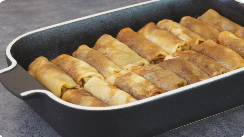 - Храните в холодильнике. Если блины остались, накройте форму крышкой и уберите в холод. На следующий день разогрейте в микроволновке или в духовке под фольгой — они снова станут мягкими.