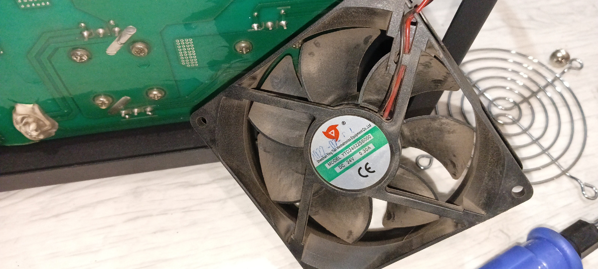 При запуске аппарата вентелятор охлаждения временами не набирал нужного разгона. Предположил то что закончилась смазка и он просто напросто начал работать на сухую.