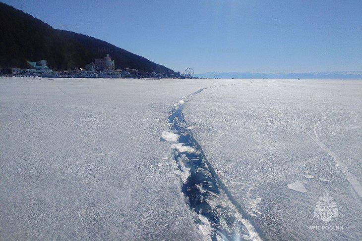 На Байкале из-за плюсовых температур лед начал крошиться и покрываться трещинами