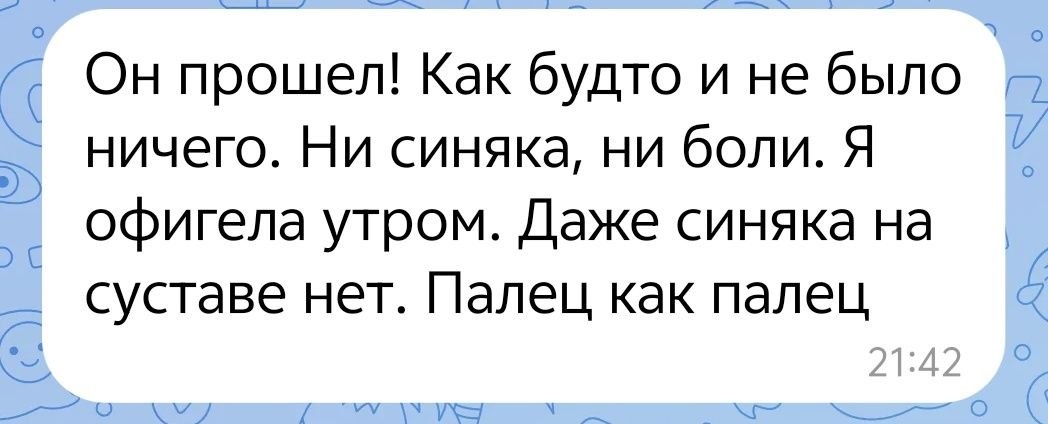 Была, говорит, в гостях у подруги - фельдшера. И та в суете пнула ступеньку: боль адская, палец распух, посинел и не шевелится. Говорит: точно перелом, без вариантов. Даю ей эссенцию Белой сирени,чтобы капать на палец. Велю делать это не разок, а каждые 10 минут. Первый скрин - это как раз ее ответ на вопрос: как дела? - на следующий день. Скажете: с Белой сиренью истории не удивляют? Привыкли к ее силе?! Тогда вот вам продолжение дайджеста #цветочные_исцеления из закрепа. Их в канале собрано ох как не мало. ✅История потерянного подростка, из обычного мальчика превратившегося в злобного человека со вспышками аутоагрессии. ✅История женщины, которая несла на себе весь мир и не могла остановиться спасать всех. ✅История ранимого мальчика, который не мог жить без сарказма и перестал верить в людей. ✅История про женщину-психолога, в семье которой каждый день шла война. ✅История крайних трепетность и ранимости, с которыми было невозможно жить. Спасибо, что читаете, пишете свои истор