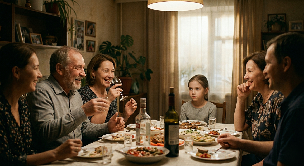 Семейный праздник. На столе еда, взрослые наливают вино или что-то покрепче. Кто-то говорит: «Ну без этого не расслабиться». Другой добавляет: «По чуть-чуть можно, мы же культурно». Ребенку: «Тебе рано, вот вырастешь ‒ поймешь». Взрослые уверены: это просто фон. Слова ни о чем. Исследования показывают другое. Дети 7–10 лет хорошо запоминают эти фразы ‒ и потом пересказывают их почти дословно. Из отдельных реплик складывается устойчивая картина: что такое алкоголь, зачем он нужен и какое место занимает в жизни взрослых. Речь прежде всего о качественных исследованиях ‒ интервью и фокус-группах, где детей и родителей опрашивали по отдельности. Выборки там не миллионные, но закономерности воспроизводятся устойчиво. Дети подробно вспоминают, что взрослые говорили о том, зачем нужен алкоголь: чтобы расслабиться, создать настроение, «отпраздновать как следует». Родительские комментарии за столом становятся главным источником представлений о том, как «принято» пить ‒ в семье и вообще среди люд