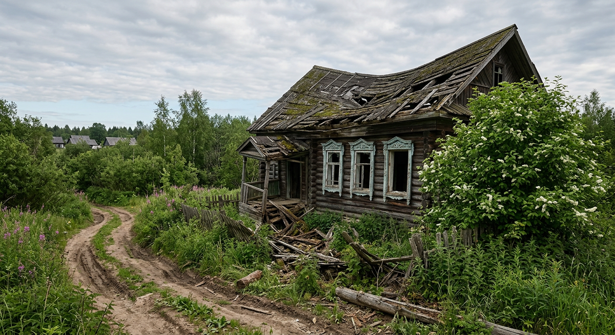 На самом краю деревни Сосновка, там, где просёлочная дорога делает последний поворот и уходит в заросли ольхи, стоит дом. Вернее сказать — стоял. Потому что то, что от него осталось, домом назвать язык уже не поворачивается. Крыша просела посередине, как спина старой лошади. Наличники, когда-то резные и крашенные в весёлый голубой цвет, повисли криво, будто дом состроил гримасу и так и застыл. Крыльцо провалилось. Забор давно лёг в траву и порос кипреем, а в палисаднике, где когда-то, говорят, цвели георгины, теперь стоял только огромный, непомерно разросшийся куст черёмухи, по весне заволакивавший всю округу дурманным, тяжёлым запахом.