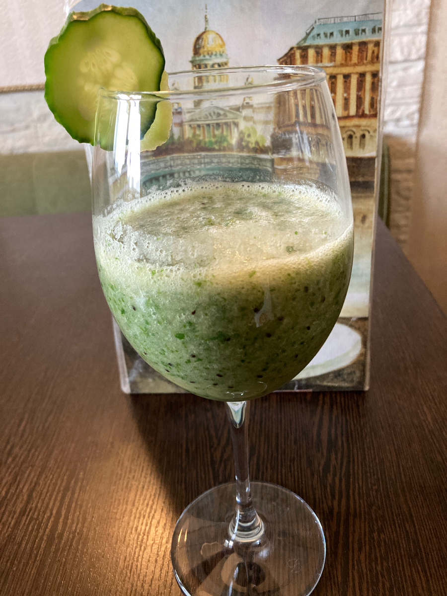 листья шпината, залейте водой и взбейте смузи ещё раз