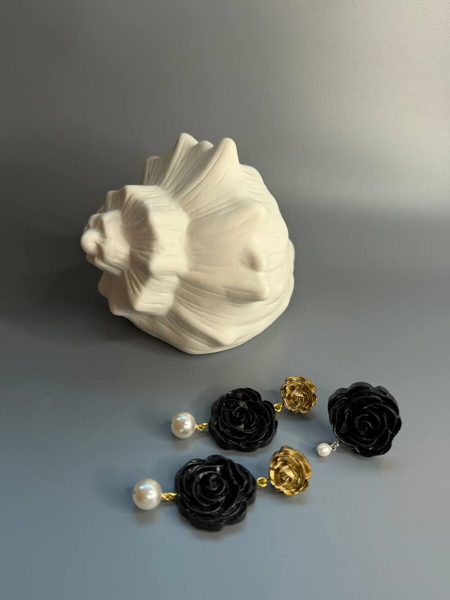 Хотелось роз, но чёрных, хотелось интересной фурнитуры, но легкой… Когда не находишь именно то что хочешь, приходит одна мысль : сделать всё самой. Эта краткая история как я пришла к полимерной глине и влюбилась! Получилось красиво! Серьги и кольцо из полимерной глины с жемчужинами. Легкие и фактурные украшения, такие просто находка для тех, кто хочет менять свой образ и удивлять саму себя своей смелостью, уходом от «классики» и необычными формами.
