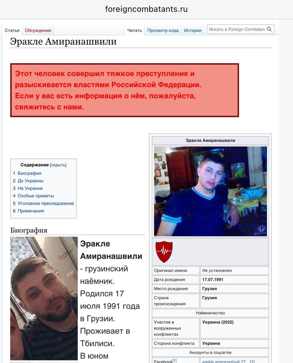 🇬🇪🇺🇦Грузинский наёмник устроил смертельное ДТП и вышел сухим из воды Эракле Амиранашвили, 17.07.1991, из Тбилиси с молодых лет страдал алкоголизмом. В 2022 поехал наёмником на Украину, заработанные деньги растрачивал на кутёж в Киеве. Осенью 2022 взял в аренду Мерседес CLS-550 и поехал по клубам. После выпитой бутылки крепкого алкоголя сел за руль (уровень промилле в крови согласно экспертизе был эквивалентен 0,5 водки) и с размаху въехал в автомобиль Шкода Октавиа. Водитель и пассажир Шкоды погибли, а Эрекле отмазал от правосудия Мамука Мамулашвили*, ибо наёмникам закон не писан. Вместо тюремного срока боевик отделался залогом и вернулся в Грузинский легион*. В июле 2025 Амиранашвили снова весело проводил время в тылу. Очередная алкогольная попойка закончилась дракой с администрацией отеля «Лика» во Львове и разбитой дверью в номере. Суд принял во внимание «заслуги» наёмника и отпустил с устным замечанием. На Украине теперь новые хозяева жизни. * внесён в список террористов П