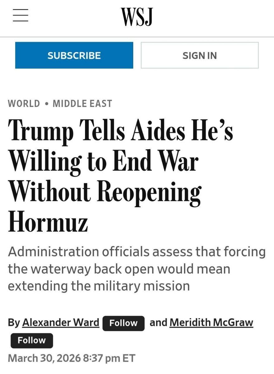 Дональд Трамп в частных беседах со своими помощниками выразил готовность завершить военную операцию против Ирана. Об этом сообщает издание Wall Street Journal. По данным газеты, ключевым моментом позиции Трампа является то, что он готов пойти на прекращение боевых действий даже в том случае, если стратегически важный Ормузский пролив останется в значительной степени закрытым для судоходства. Сайт "Другая Украина" / Telegram / Вконтакте / Центр поддержки Украинцев "Другая Украина" теперь в МАХ