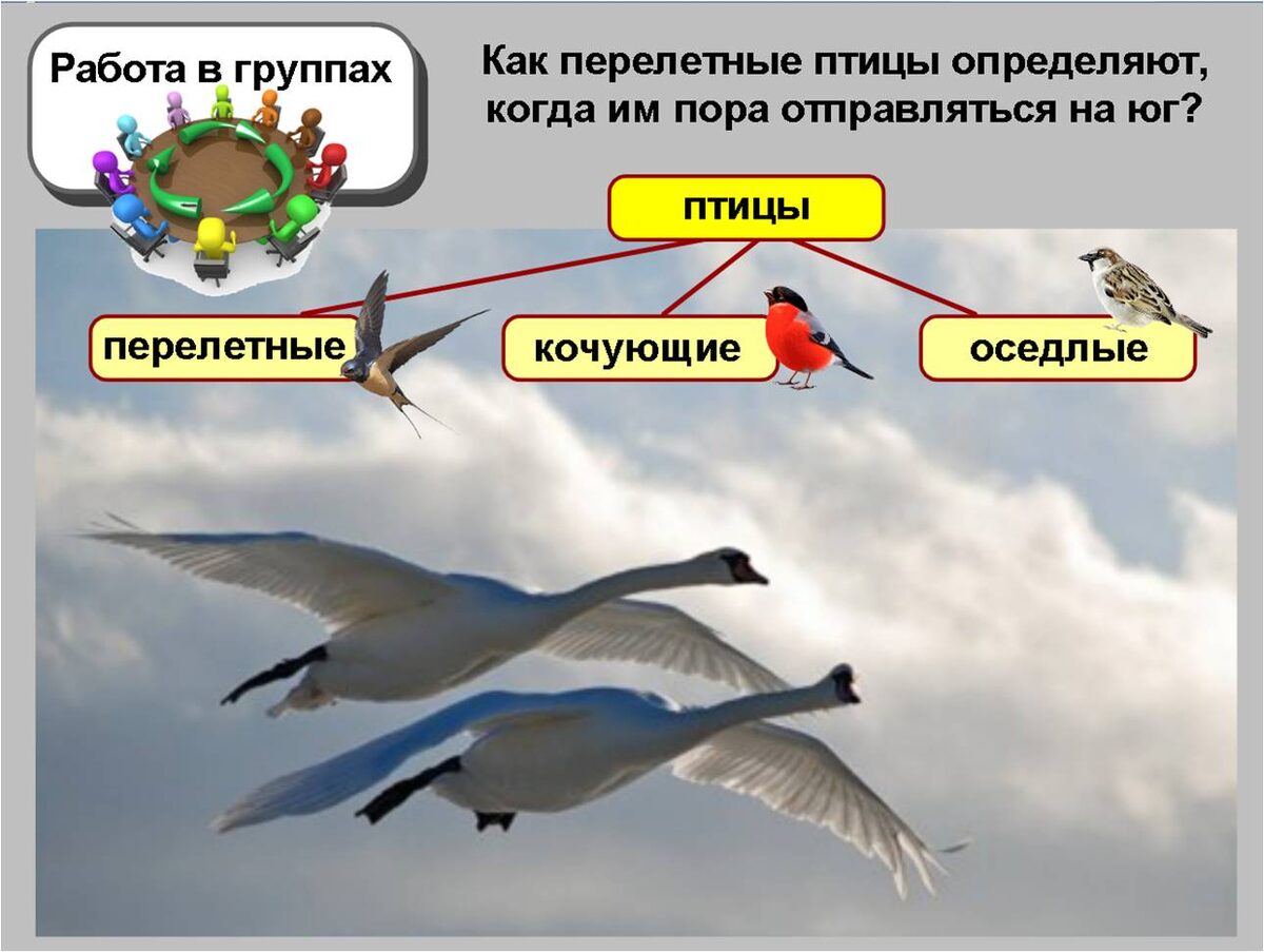 Кстати, с этого проблемного вопроса можно начать урок. Мол, товарищи ученики, как вы думаете, по какой именно причине птицы осенью улетают в теплые края? Гипотезы я записываю где-нибудь на боковой доске, чтобы позднее вернуться к их обсуждению. Главная задача проблемного вопроса - не получить ответ прямо сейчас, а вовлечь детей в урок, собрать их внимание, зарядить их мозг на работу.