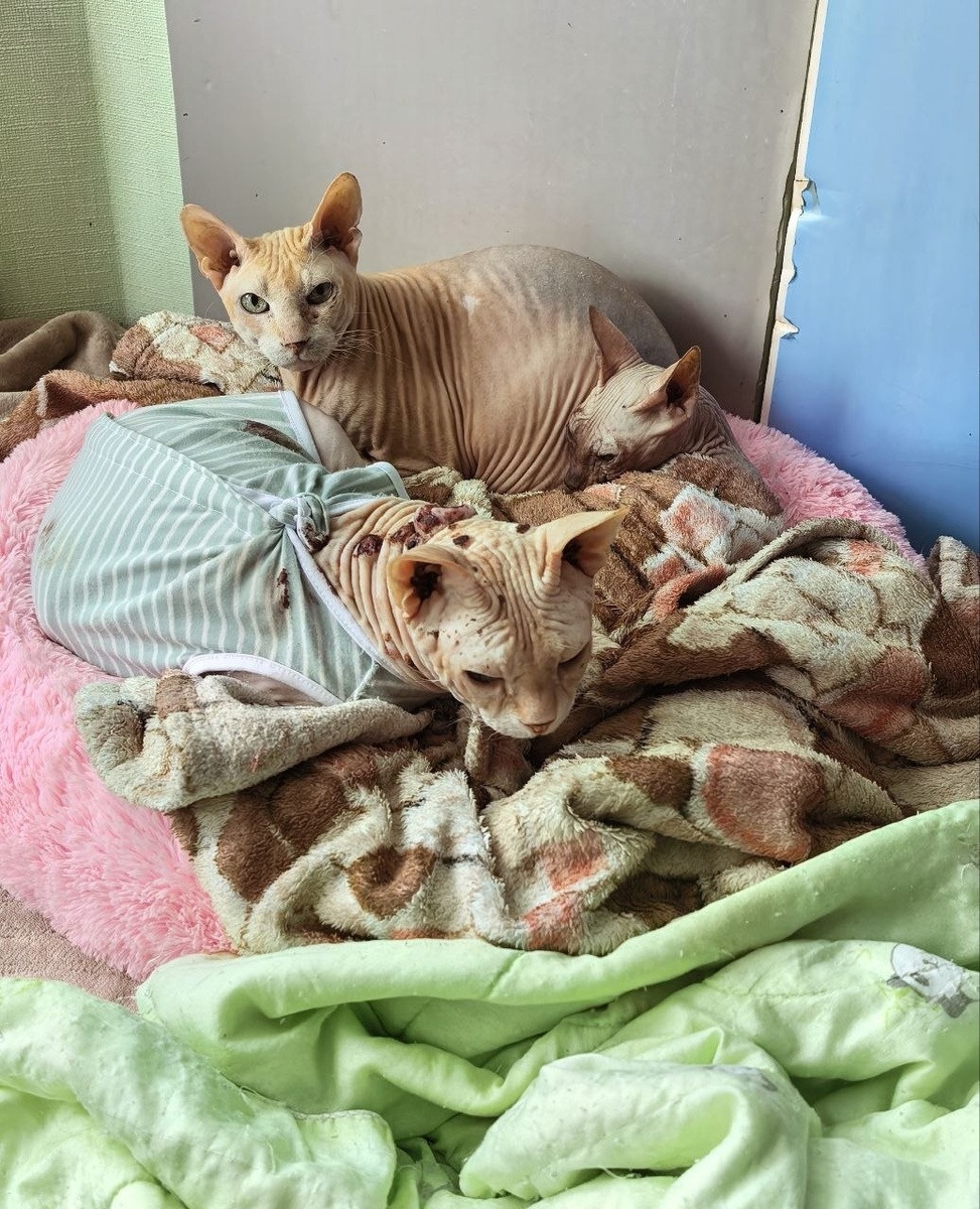 Беда в приюте! Чуть не замёрзли лысые кошки