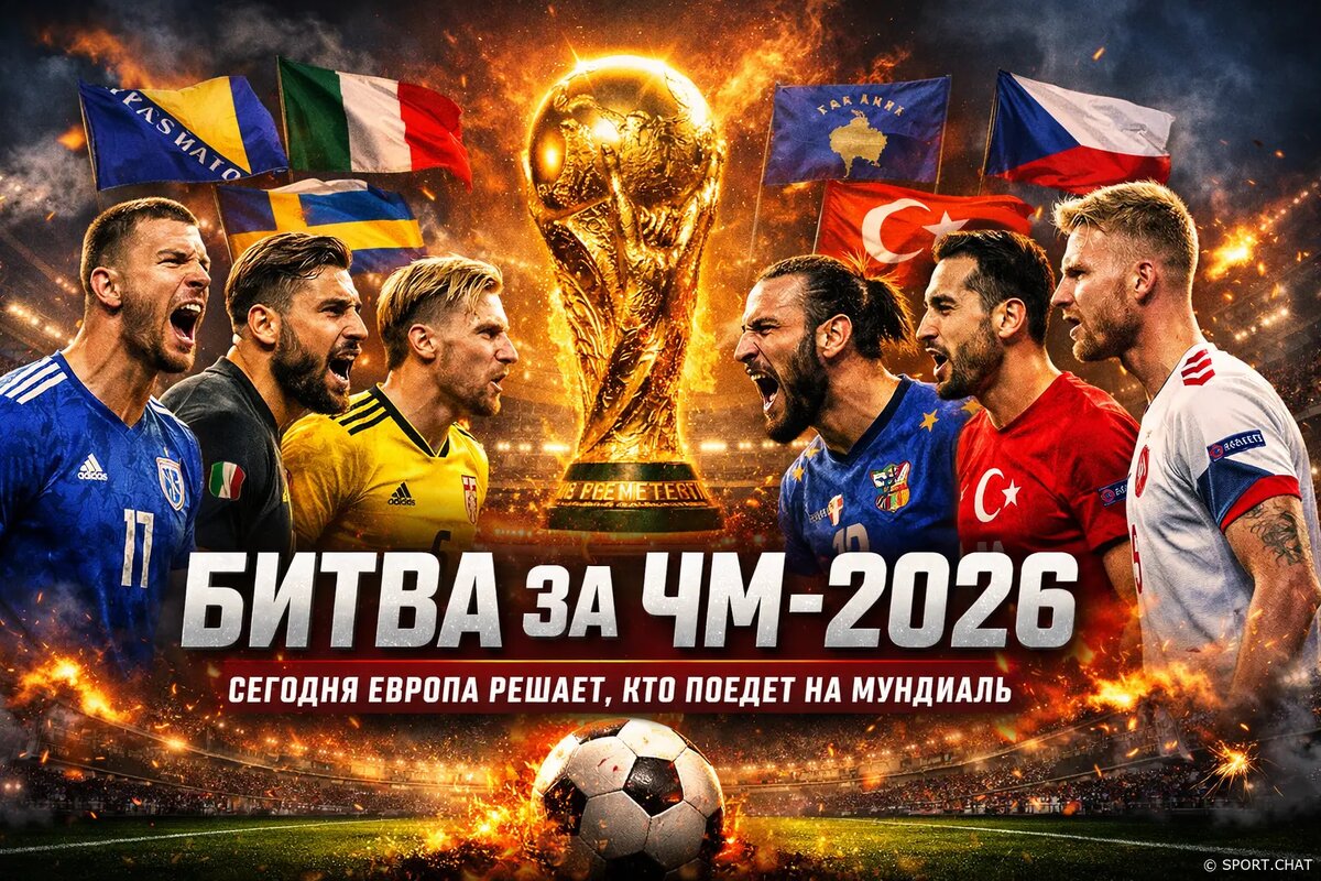 Сегодня, 31 марта, Европа живёт одним — финалами стыковых матчей за выход на чемпионат мира-2026. Четыре игры, четыре путёвки и максимум драмы — все матчи стартуют в одно время, в 21:45 по московскому времени. Босния и Герцеговина — Италия