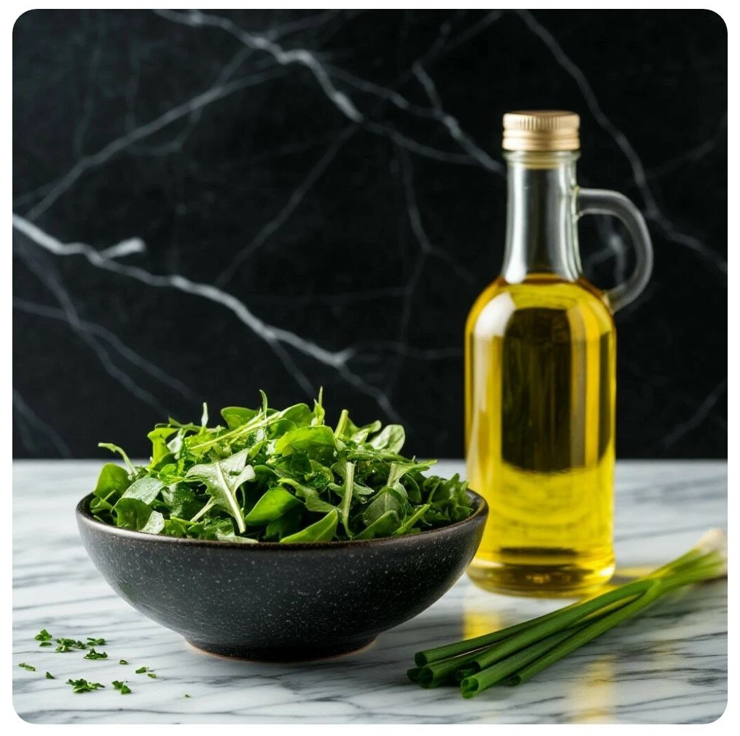 Листья одуванчика выдержать в холодной подсоленой воде 30 мин, затем измельчить. Измельченные петрушку и зеленый лук соединить с одуванчиком, заправить маслом, солью и оставшимся. ингредиентами