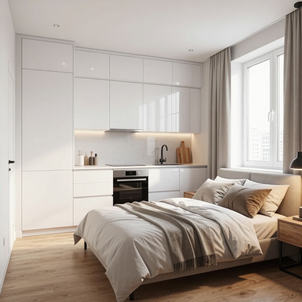 Когда каждый квадратный метр на счету, вопрос «как сделать комнату больше?» становится главным. Существуют десятки дизайнерских хитростей, которые обманывают глаз и раздвигают границы без единого удара перфоратором. Начнём с главного врага маленькой комнаты — захламлённости. Первый и самый важный приём — избавиться от всего лишнего. Открытые полки создают визуальный шум. Замените их на закрытые системы хранения. А если пространства катастрофически не хватает, наша специализация — мебель-трансформер. Кровать, которая днём прячется в шкаф, освобождает до 70% площади. Второй приём — игра с цветом. Светлые стены, пол и потолок визуально раздвигают границы. Используйте «растяжку» цвета: самый светлый оттенок на потолке, чуть насыщеннее — на стенах, самый тёмный — на полу. Вертикальные полосы на обоях «поднимают» потолок, горизонтальные — «раздвигают» стены. Третий секрет — зеркала. Классика, которая работает безотказно. Большое зеркало в полный рост на стене напротив окна удваивает глубину