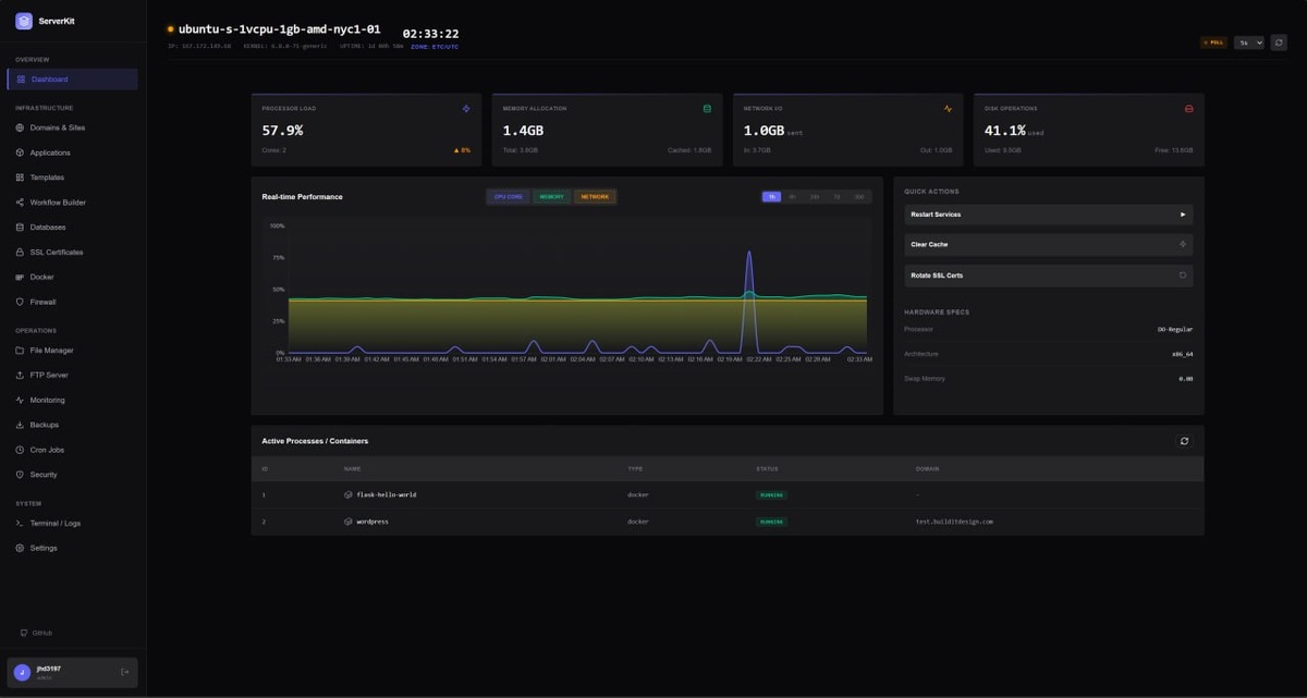 🌐 ServerKit — это лёгкая, современная панель управления сервером, предназначенная для самостоятельного управления веб-приложениями, базами