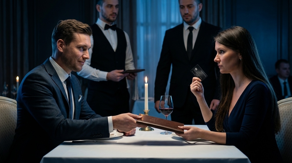Напротив меня сидел человек, с которым я планировала провести приятный вечер. Мужчина, который последние два часа изо всех сил пытался казаться хозяином жизни. А теперь этот «хозяин» с победоносной, мерзкой ухмылкой придвигал ко мне кожаную папку со счетом.