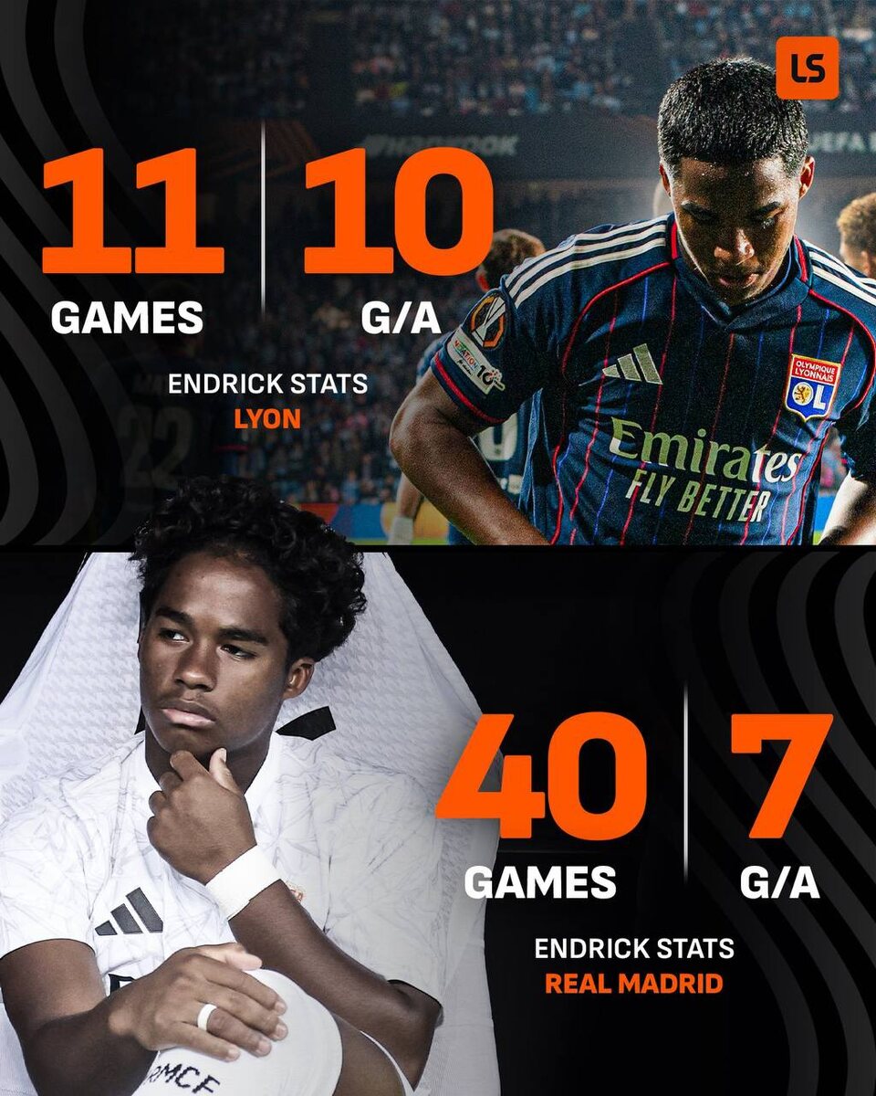 🇧🇷 Эндрик демонстрирует более высокую результативность в «Лионе», чем в «Реале