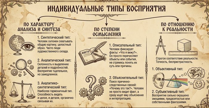 Аналитико-синтетический тип. На самом деле у большинства людей тип восприятия смешенный, это наиболее гармоничный вариант. Да, бывают люди с ярко выраженной склонностью к одному типу восприятия, но их не так много.