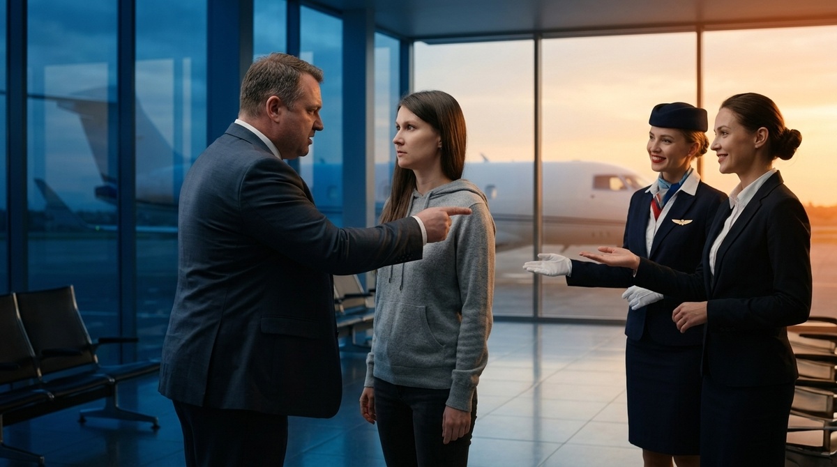 Я стояла у стойки приоритетной посадки в бизнес-зале аэропорта, погруженная в свои мысли и утренние отчеты в телефоне. И совершенно не ожидала, что в этом месте, где люди обычно соблюдают хотя бы видимость приличий, кто-то решит прокладывать себе путь физической силой.