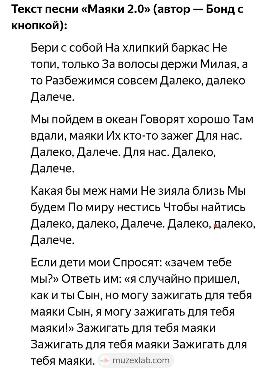 0". Очень надеюсь, что у вас загрузилось видео🙏 я привожу и текст песни, но оно не менее важное для нашего разбора. Да-да, сейчас этот текст пишет несостоявшаяся училка русского и литературы, Алсу Флюровна. Потому что анализ будет именно лингвистический. В песне остро звучит детско-родительская тематика. С первых строк мы понимаем - автор обращается к своей возлюбленной, а, быть может, просто подруге. Не суть. В окружающем хаосе 21 века, где нам буквально приходится выживать, герои пытаются удержаться вместе на "хлипком баркасе" и держат друг друга за волосы, чтобы не потеряться в бушующем океане под названием "жизнь". Герои песни не боятся этого океана, потому что знают: они не одни и для них всегда горят маяки. Чувство, что за твоей спиной стоят родители и дают тебе силу рода в самых трудных ситуациях, для кого-то само собой разумеющееся, как наличие руки или ноги, для кого-то горькое и недостижимое, но для каждого человека на этой Земле жизненно необходимое. Кому из родителей
