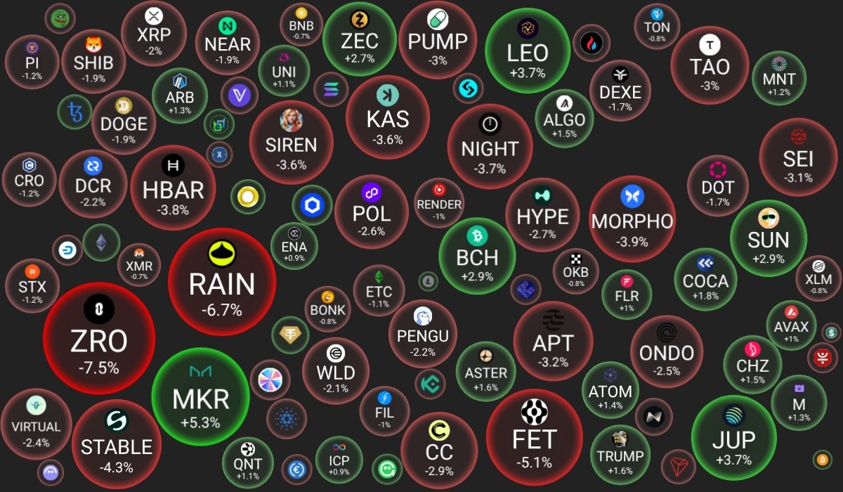 🗓 31.03.2026 09:30 по Москве. 🔗 Посмотреть на сайте 📈 Лидеры роста (из ТОП-100): 🟢 Maker (MKR): $1650 (+5.3%) 🟢 LEO Token (LEO): $10.06 (+3.7%) 🟢 Jupiter (JUP): $0.1536 (+3.7%) 📉 Лидеры падения (из ТОП-100): 🔴 LayerZero (ZRO): $1.8575 (-7.5%) 🔴 Rain (RAIN): $0.0077 (-6.7%) 🔴 ASI Alliance (FET): $0.2299 (-5.1%) 🔍 Основные метрики: 🟢 Общая капитализация: $2321.61 млрд (+0.01%) 🟢 Общий объем торгов: $84.73 млрд (+25.04%) 🟢 Доминация Bitcoin: 58.04% (+0.06%) 🟢 Доминация Ethereum: 10.69% (+0.06%) 🟢 Индекс страха и жадности: 11 / 100: ЭКСТРЕМАЛЬНЫЙ СТРАХ (+3) 🟢 Индекс Альтсезона: 49 / 100: НЕ АЛЬТКОИН-СЕЗОН (+2) 📖 Интересно почитать: 👉 Veles Bot: Как начать торговать криптовалютой на автопилоте даже без опыта 😻 Наши сервисы и бонусы: ⛽ EthGasPrice.org - трекер стоимости газа для сети Ethereum 📈 edgeX - ТОП-4 DEX биржа, пассивный доход до 70% годовых!!!