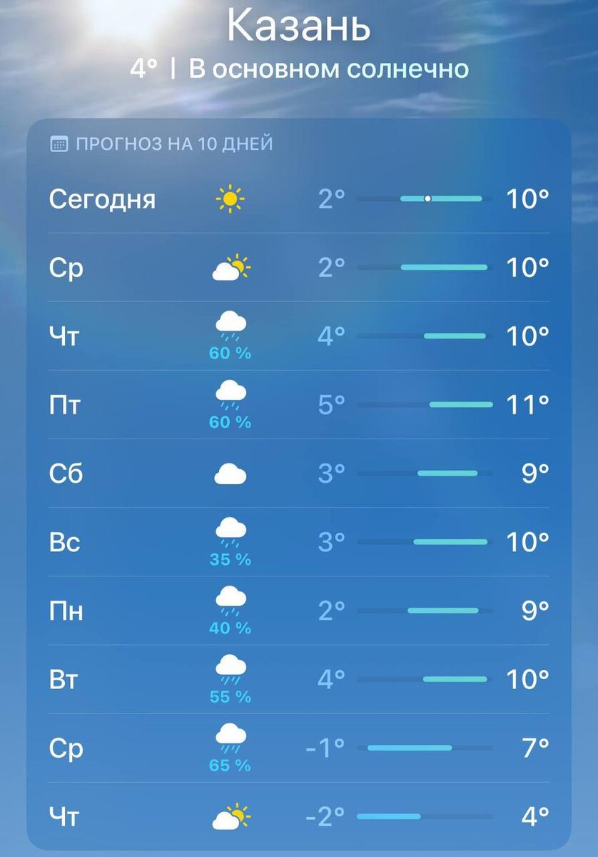 Только жители Казани начали наслаждаться теплыми и солнечными деньками, как тут же прогноз эту радость прервал. Уже с четверга в нашем городе ожидаются дожди, которые будут идти почти целую неделю. 📲 Читайте нас в MAX 😊 Подписаться | Прислать новость