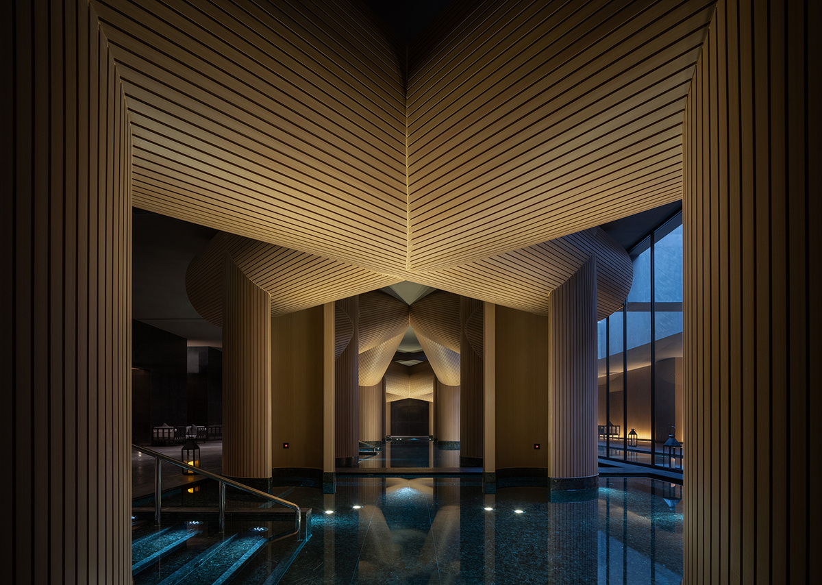 В 2024 году команда архитектурного бюро DJX Design завершила строительство отеля Xinghe Yungu, расположенного на Национальной аэрокосмической базе в Сиане (Китай), в соответствии со стандартами класса люкс. В этом проекте понятие "роскошь" было осмыслено по-новому, с точки зрения практического опыта, и создана беспрецедентно прекрасная утопия. Близость к аэрокосмической базе с одной стороны и к одному из древнейших городов Поднебесной с другой определила дизайн: фасад отеля решен в классическом региональном стиле, правда, осовремененном. А вот интерьер поистине футуристический, пространства выстроены вокруг вертикали, главная тема — стремление вверх. Свет рассматривался как основной архитектурный элемент с самых ранних стадий проектирования. Уже в вестибюле отеля освещение проступает из темноты, постепенно раскрывая глубину, текстуру и масштаб предметов и создавая визуальный переход от экстерьера к интерьеру, который кажется оторванным от времени. Все поверхности, отражая свет по-ра