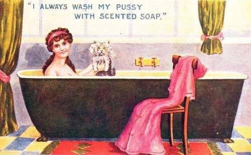 Представьте себе, 1920-е годы, и вот на почтовой открытке написано: "Я всегда мою свою киску ароматным мылом