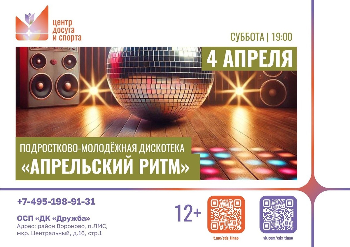 » 🎶 Апрель задаёт свой ритм — яркий, энергичный, весенний 🌿 Приглашаем подростков и молодёжь провести вечер в атмосфере музыки, движения и свободы самовыражения! Только музыка, только драйв и танцы без остановки 💃🕺 Отличный повод встретиться с друзьями, зарядиться настроением и просто отдохнуть в ритме весны ✨ Лови волну «Апрельского ритма» и будь в центре событий 🔥 #новоститинао #анонсытинао #анонсывороново
