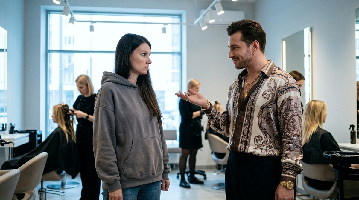 — Стоп. Ни слова больше, — его голос был пропитан ядом и высокомерием. — Милочка, ты вообще понимаешь, куда ты зашла? Это не парикмахерская «Светлана» в спальном районе. Ты вывеску видела? Это студия высокой эстетики.