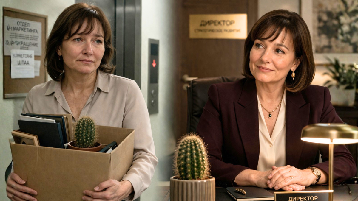 И пошла дальше. С прямой спиной, с очками на цепочке, с седой прядью у виска. Пятьдесят два года, финансовый директор, женщина, которая за два года прошла путь от коробки с кактусом до кабинета с латунной табличкой.