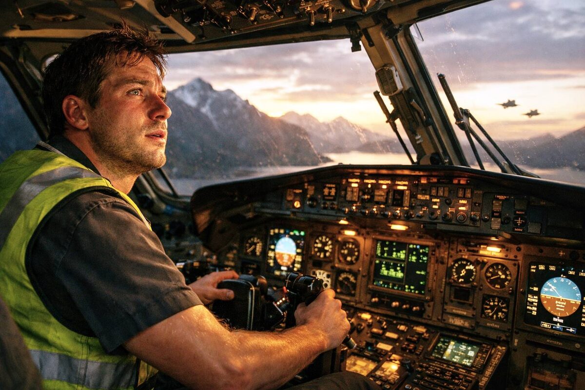 Самолёт Q400 летел над заливом. Два истребителя F-15 шли чуть позади, достаточно близко, чтобы видеть в кабине единственного человека. Он не был пилотом. Он никогда не был пилотом. Шестью часами ранее он грузил чемоданы на рейс до Портленда. А несколькими минутами назад он вывел самолёт из манёвра буквально в нескольких метрах над водой чисто, без видимого срыва. Пилоты истребителей признались потом: они были впечатлены.