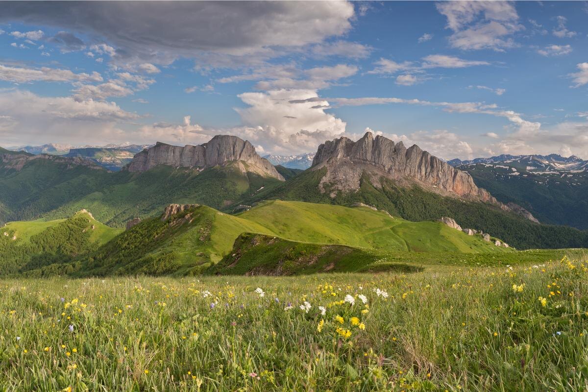 Когда наступает время цветения, луга превращаются в настоящее произведение искусства природы: полезный чабрец, альбанский прострел, дриада кавказская, плаун альпийский и много других целебных трав — это лишь небольшой список растений и цветов, что украшают окрестности Большого Тхача. Яркие краски этих полей особенно притягательны летом и во время осеннего листопада.