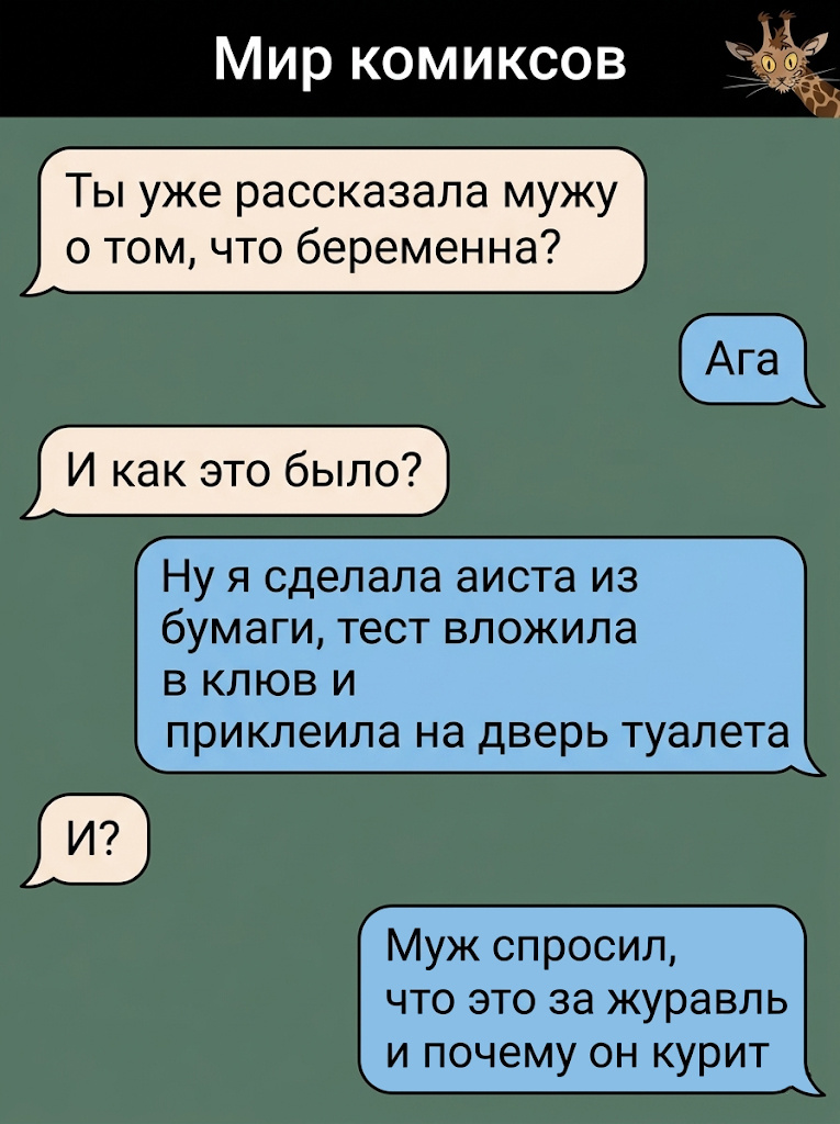 Как видите, чувство юмора — это единственный способ выжить в мире, где мужья не понимают намеков, зато если поняли, то лучше бежать. Пусть ваши диалоги будут только позитивными, а неловкие ситуации превращаются в отличные истории для посиделок с друзьями. Ставьте лайк, если узнали в ком-то из героев себя или своих знакомых, и до встречи в следующей подборке!