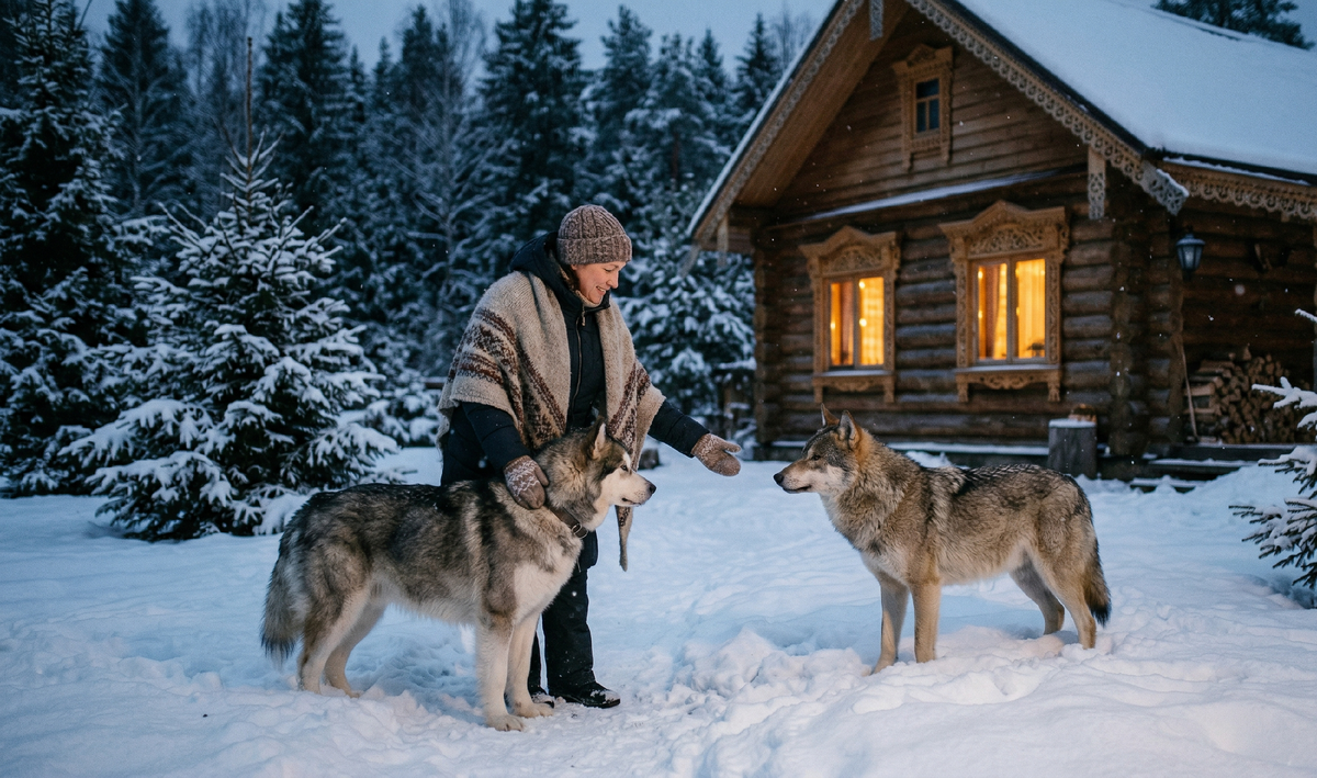 Именно там, в безопасности и тепле, на старом сене волчица принесла троих крепких малышей. Тимошка не отходил от них ни на шаг, гордо охраняя сарай. Елена Сергеевна теперь заботилась о них открыто, принося еду и воду, часами сидя на пороге и наблюдая, как лесная мать бережно вылизывает своих детенышей. Тимошка подходил к хозяйке, клал тяжелую голову ей на колени и преданно смотрел в глаза.