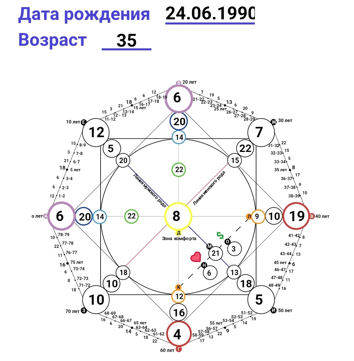 И тут ещё видим также задвоенную программу 14-20-6. И здесь все более, чем хорошо. Эта программа даёт обладателю успешный успех. Здесь яркое проявление творчества и удача во всём. Вот именно музыкальное творчество прям показано. Человеку всегда везёт, он умеет просить и получает от жизни лучшее. Просто любимчик Фортуны.