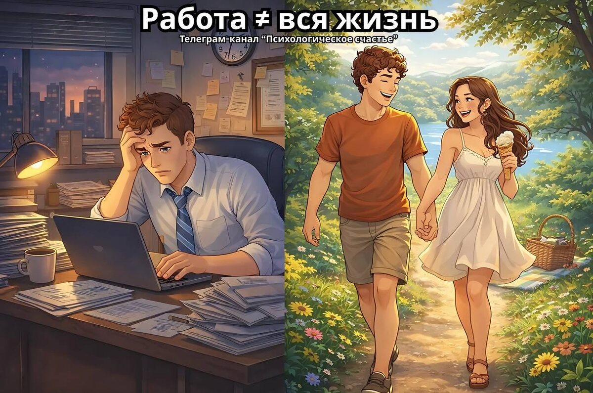Часто замечал такую картину, что человек вкладывается только в свою работу и помимо неё у него ничего нет. И самое печальное тут то, что такие люди редко бывают по-настоящему счастливы, ведь на самом деле только единицы действительно этого хотят. Причины у этого могут быть самые разные: кто-то выбрал такую работу, где по сути нет свободного времени на что-то ещё, кто-то добился очень желаемой должности и теперь боится это всё потерять, поэтому приходится выкладываться на все 200%, а кто-то может избегать другой жизни, уходя только в свою работу и так далее. В посте про баланс ценностей я писал о том, почему так важно иметь хотя бы несколько ценностей: ведь если с одной из них что-то будет не так, то вам хотя бы на что-то будет опереться и не остаться у разбитого корыта. Да и перегореть на одной лишь работе, которая может вообще не приносить вам удовольствия, очень просто, хотя в начале карьерного пути это может казаться иначе. И что не менее важно, сама жизнь прекрасна, в ней м
