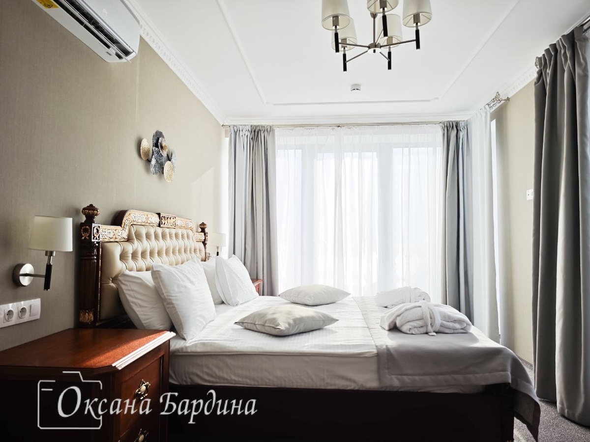 Это отель Голубой залив и этот номер вы на сайте самого отеля вообще не найдете. Большой номер 2 спальный, 2 ванных, большая гостиная, прямой вид на море и подогреваемый бассейн. И на сайте этих фотографий нет... Он продается как некая категория номера... А я как посуточник и интерьерный фотограф понимаю, отель не допродает свои номера и услуги и не подчеркивает их уникальность. Если бы я там лично не была и персонал не предложил посмотреть... Вы бы и не узнали о вилле Рахманинов всего на 3 номера со своим личным бассейном.