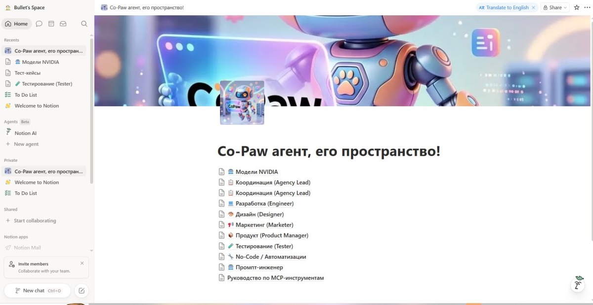 Одна из неочевидных прелестей ИИ-агентов это шикарное оформление рабочего пространства! ✨ Раньше я не особо активно вёл дела в Notion, вечно не хватало времени на красоту и структуру. Но сегодня, благодаря агентам, у меня всё разложено по полочкам и выглядит просто отлично. Всё, что вы видите на скриншоте, я установил и настроил под себя. Теперь у меня там работает целая виртуальная команда, где каждый агент отвечает за своё конкретное направление: 📈 Маркетолог 🐛 Тестировщик 💻 Кодер 🛠 Главный инженер 🎨 Дизайнер У каждого из них прописаны свои навыки и роли, и с поставленными задачами они справляются просто на ура! 🔥 Всю эту систему я собрал в CoPaw. Честно говоря, этот сервис мне зашёл намного больше, чем тот же Open Claw. Интерфейс и логика работы радуют, так что теперь всерьёз подумываю развернуть его на собственном сервере, чтобы всё работало автономно. 🚀