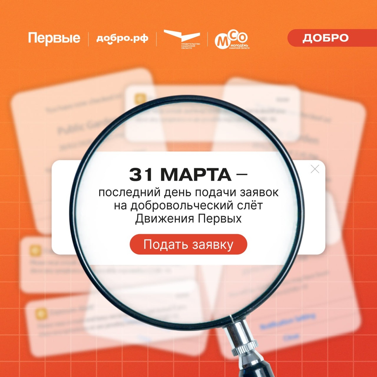 ! ➡️ Скорее жми — на ссылку! Это твой шанс попасть на масштабную встречу волонтёров в Самаре — завести друзей, получить новый опыт и рассказать всей стране, как ты помогаешь тем, кому это нужно. ❤️ Движение Первых. Добро #БлагоТвори