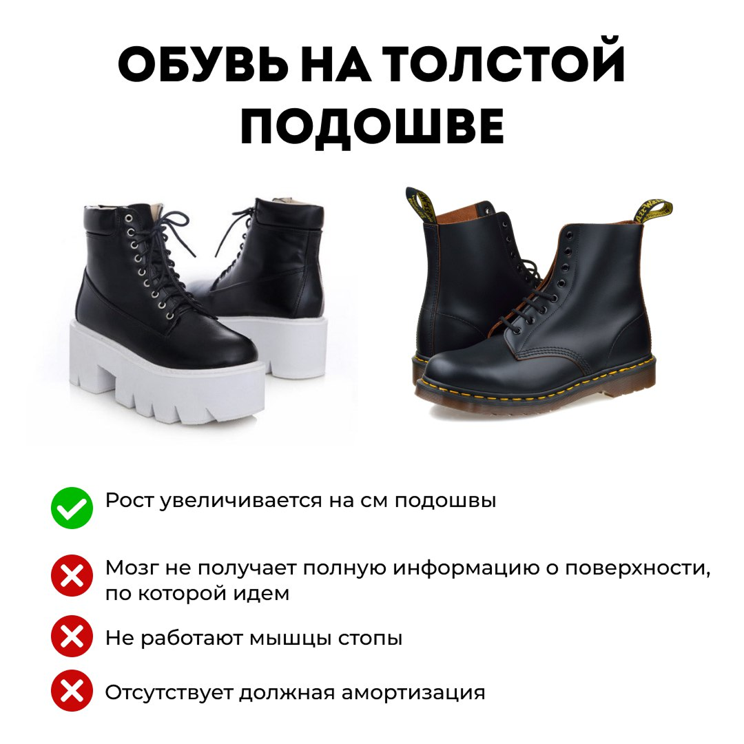 Если вы, придя домой и сняв 🥾 обувь, чувствуете облегчение, растираете пальцы и шевелите ими, если у вас постоянные мозоли, то вы носите 👠 неподходящую и вредную обувь. Наша 🦶 стопа изначально создана, чтобы ходить босиком. Понятно, что в наше время это актуально только дома. И мы сталкиваемся с одной важной проблемой: довольно сложно найти обувь, которая не будет вредить стопе и менять ее анатомию. Если мы весь день ходим в неправильной обуви, да и много лет ходим в опасной обуви, то тренировки 2-3 раза в неделю ☹ не изменят ситуацию. После тренировки вы почувствуете "вау" эффект, легкость в стопах, но потом опять засунете ногу во вредную обувь. Давайте разберем какая же обувь вредна и опасна для наших стоп. 🥾Обувь на толстой подошве. Нет контакта стопы и поверхности, а значит нарушается походка, так как обувь не соответствует физиологии стопы и ее движениям. 🥾 Обувь на высоком каблуке нарушает угол тела относительно прямой поверхности пола. Регулярное ношение обуви на высоких к