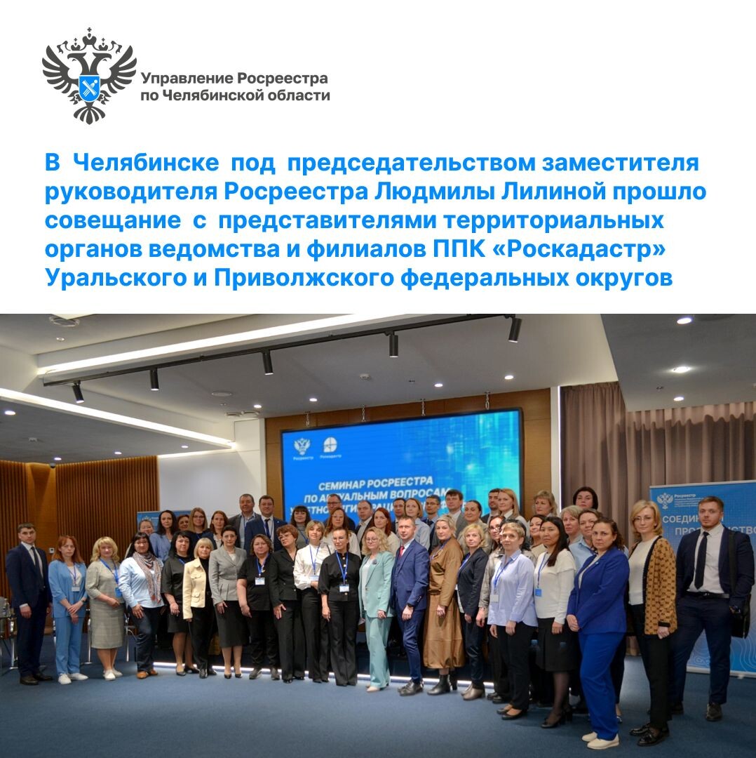 На базе Управления Росреестра по Челябинской области заместителем руководителя Росреестра Людмилой Лилиной проведено совещание с представителями территориальных органов Росреестра и филиалов ППК «Роскадастр», действующих на территории Уральского и Приволжского федеральных округов. Участниками мероприятия стали представители 20 субъектов страны. Семинар был посвящен вопросам, возникающим при осуществлении учетно-регистрационной деятельности, реализации проектов по вовлечению объектов недвижимости в оборот для повышения уровня капитализации регионов, а также рабочим моментам использования Федеральной государственной информационной системы ведения Единого государственного реестра недвижимости (ФГИС ЕГРН) и её реинжинирингу. В мероприятии также приняли участие заместитель генерального директора ППК «Роскадастр» Александр Кузнецов, начальник Управления методического обеспечения и анализа в сфере регистрации прав и кадастрового учета Росреестра Юлия Куницына, начальник отдела взаимодействия