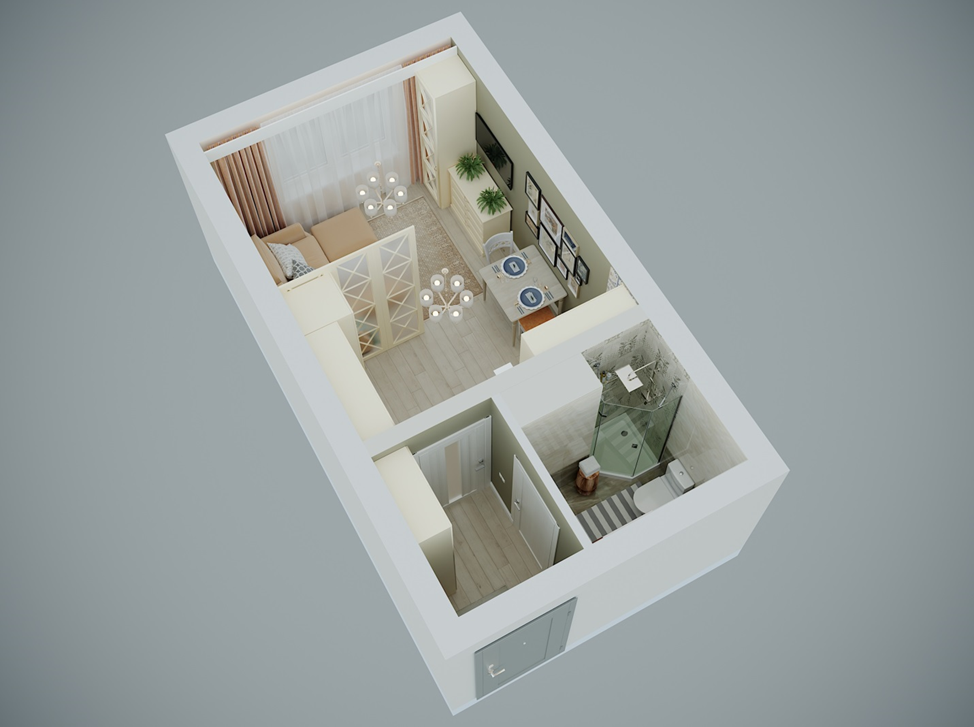Студия — один из самых популярных форматов жилья у покупателей «Группы ЛСР». Чтобы помочь новосёлам обустроиться с максимальным комфортом, специалисты компании разработали несколько дизайн-проектов студий. Все их можно реализовать, не меняя инженерные сети или конструктив, не делая перепланировку и не перенося электрику. То есть — максимально легко, быстро и бюджетно. Основная задача, которая стояла перед дизайнерами при проработке этих проектов, — сделать пространство максимально функциональным: на относительно небольшой жилой площади — 20 кв. м — разместить обеденную, гостевую, рабочую и спальную зоны. Сегодня — первый дизайн-проект. Надеемся, что вы подчерпнёте для себя несколько идей. Интерьер создан в классическом стиле: в нём превалируют пастельные тона и приглушенный графичный орнамент. Поэтому квартира кажется по-домашнему уютной, светлой и просторной. Но у неё есть свой темперамент: сдержанный, хозяйственный и практичный. Такое жильё подойдет тому, кто любит безупречный поряд