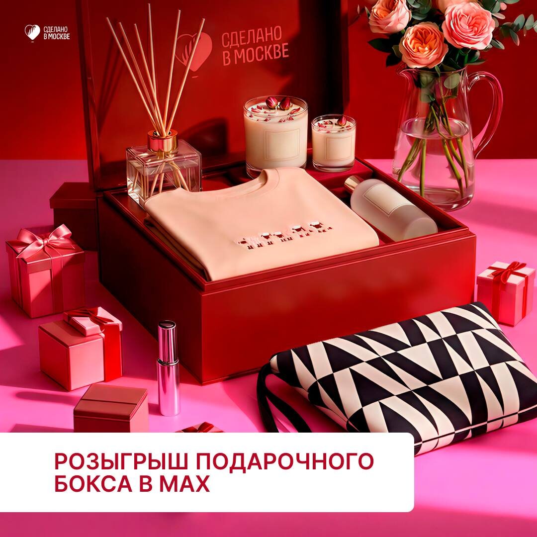 ! 🎉 Разыгрываем большой подарочный бокс с товарами московских брендов! В боксе: декоративная и уходовая косметика от Ecolatier и Cafe Mimi, одежда от бренда 4110, аксессуары от брендов ZOTĒME, В ПОЛНОЛУНИЕ, Brosista, TSDESIGN, ароматы для дома от MS HOME aromadecor и другие классные товары от столичных производителей. Чтобы участвовать: 1. Подпишись на канал Сделано в Москве в MAX 2. Найди пост с розыгрышем 3. Жми «Участвую!» 4. Перешли пост подруге Победителя объявим 3 апреля в MAX!