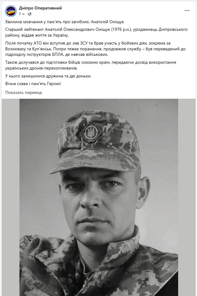 Появилась информация о погибшем старшем лейтенанте ВСУ Анатолии Онищуке, который занимался "подготовкой бойцов союзных стран, передавая опыт