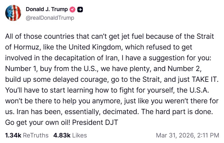 'GO GET YOUR OWN OIL!' — Trump's message to nations struggling with fuel over Hormuz