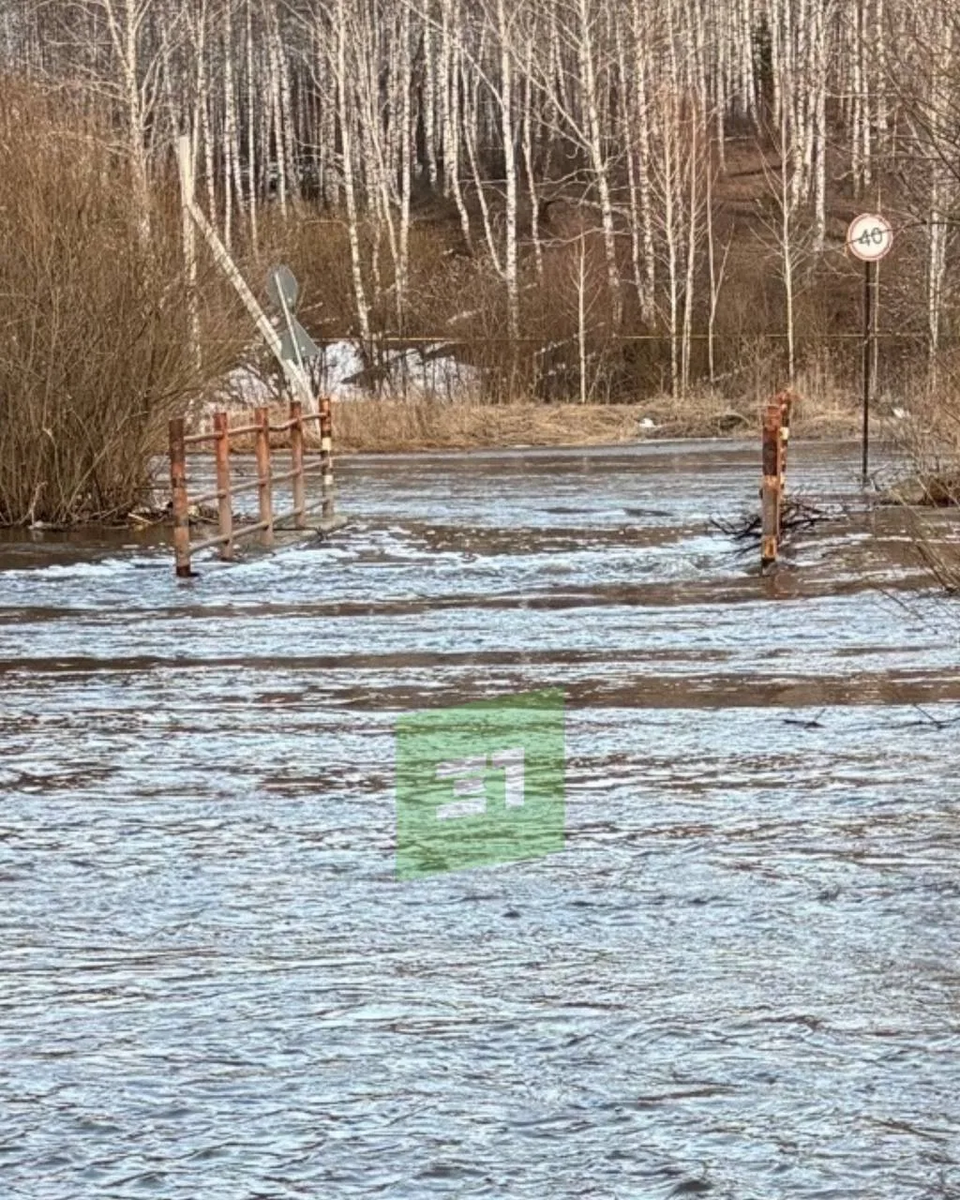 Теперь под воду ушла не только сама конструкция, но и дорога. Появилось небольшое озеро. Это тот самый мост между Рощино и Ужевкой. Переправа закрыта с 25 марта. Проезд разрешат только после того, как вода уйдет.Подписывайтесь на 31 канал в МАХ